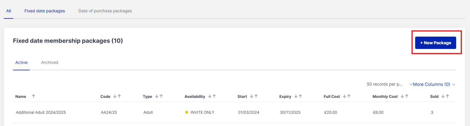 IMPORTANT THING TO NOTE: Do not archive the current seasons packages until they have expired/ the grace period has ended. If you do this will stop members from booking unless they have renewed into the new package. The best thing to do is edit the status of these memberships to 'invite only' so members can still book until the membership expires/grace period is over. However new members won't be able to join these packages when they are in the invite only status.