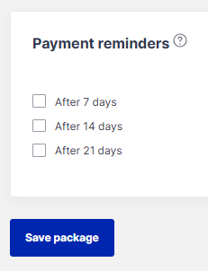 Finally decide whether you would like to send any automatic payment reminders, before saving the package.