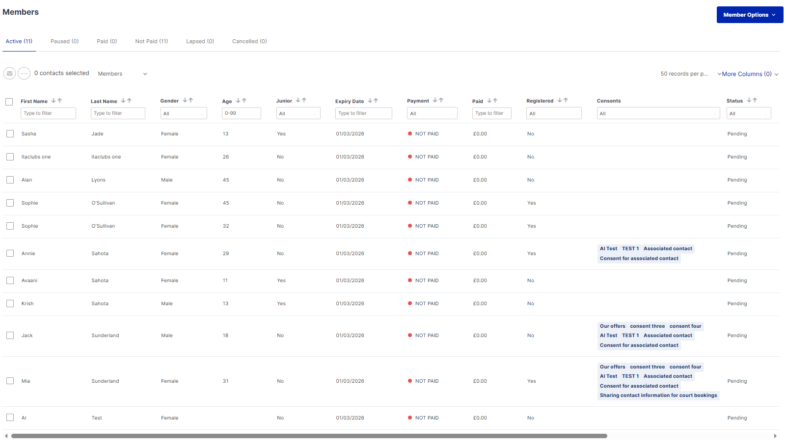 Your members from your previous package will now appear in your new package. Their status will be set to 'Pending' until they are sent a payment request and sign up to the new package.