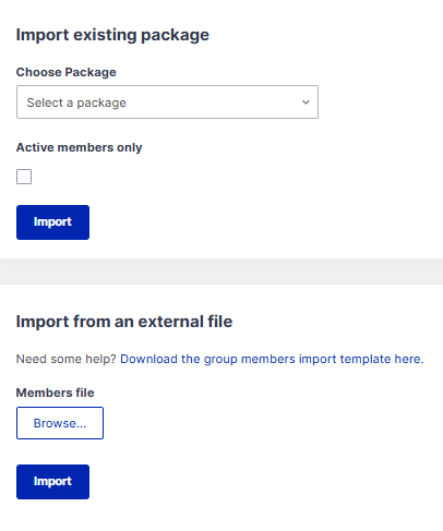 Importing from an existing package is useful if you have seasonal membership packages and want to get your members ready for the renewal process. Rather than having to create a new spreadsheet you can simply import the members across from an existing package.