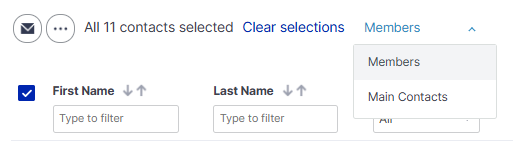 If you want to view the 'Main Contacts' for a membership remember to switch from 'Members' to 'Main Contacts' as shown below: