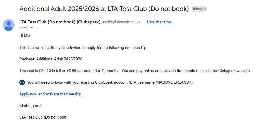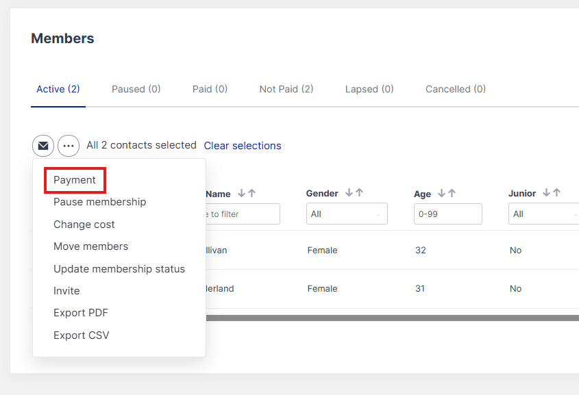 As soon as a member joins a new package, you will receive an email to confirm this. At the same time, their payment history (to reflect the amount paid and payment method) will be updated and status set to 'Active' in Clubspark if they have paid online. If they pay by other methods, you will need to add a payment manually.