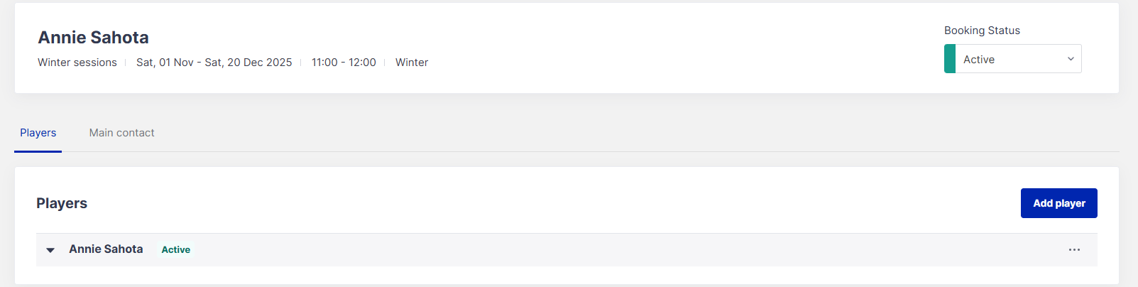 Please Note: If this is a Short Course you'll need to click on the Participant's Tab to select the players booking record
