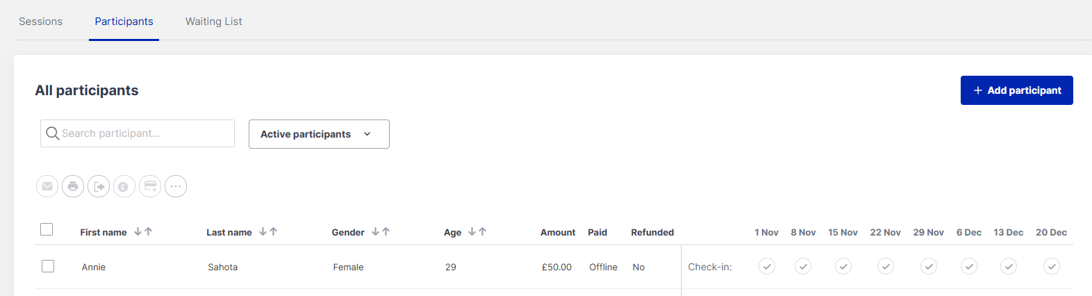 If a participant chooses to cancel their booking, or you need to cancel a book for any reason you can do so within the admin area of the platform.