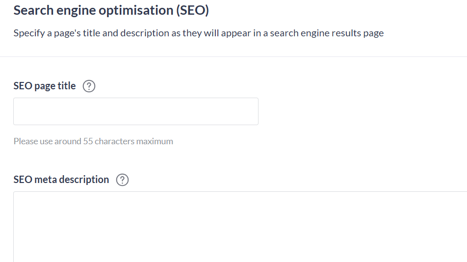 Step 6: In the final section of creating/updating your coaching page, you'll be able to add in your search engine optimisation (SEO). This helps in where/how your website display in search engine results.