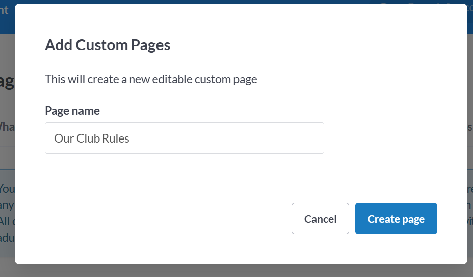 You can have unlimited custom pages that you can use to display additional information that is not related to any of the module webpages. These custom pages can be used to share information about your club or tournaments. They are not connected to any of the other areas.