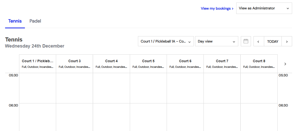 Within the Admin area of ClubSpark in the court Booking Module, you can add, edit and cancel bookings that have been made at your venue.