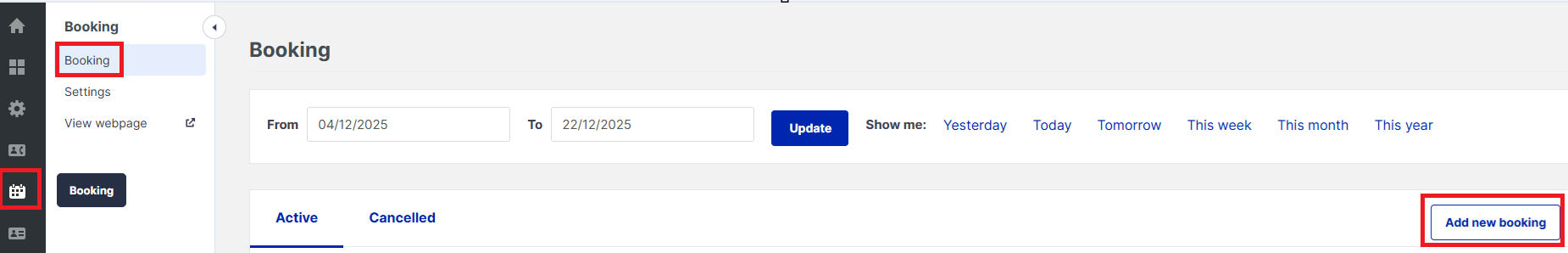 If you need to cancel a booking, you can also do this from the Admin area. First, you will need to select the booking you wish to cancel.
