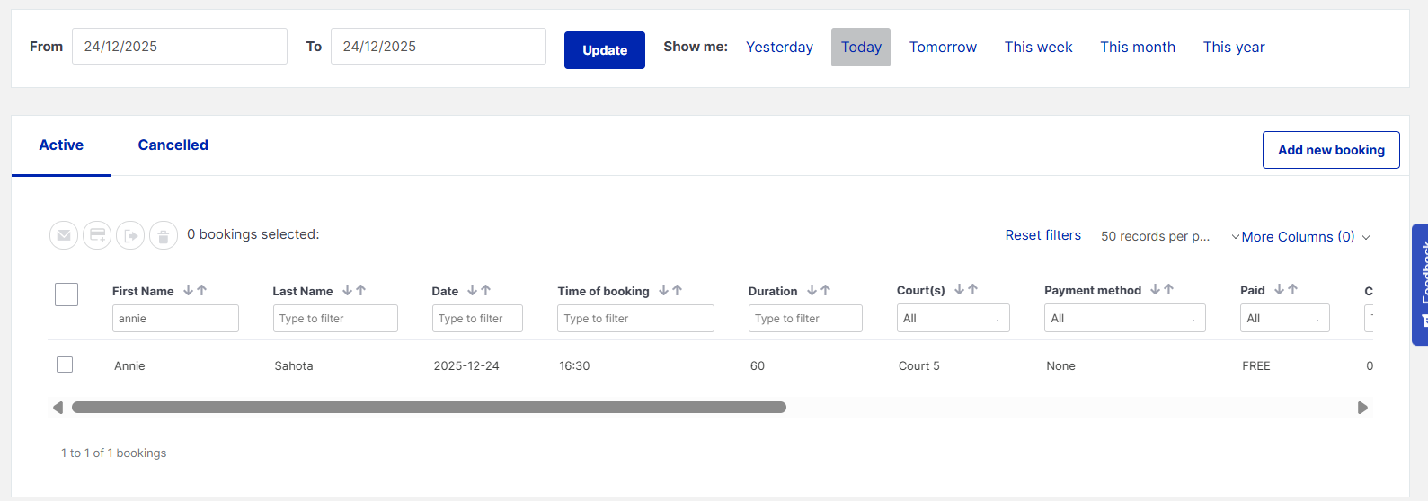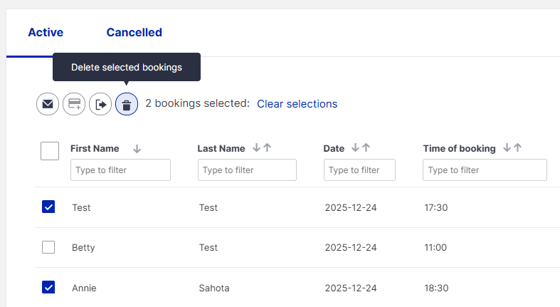 You can now bulk cancel upcoming bookings. This will save time when there are multiple players that need cancelling. To bulk cancel, tick the boxes beside their name and click the 'bin' icon.