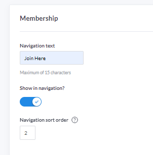 Step 3: Input the navigation sort order number for your membership page. You can find more detail on this in our Web Page Navigation Order Guide here.