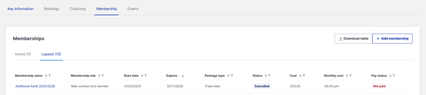 Step 6: This will move the membership record from their list of active memberships into the 'Lapsed' column so there is still a record of this cancelled membership.