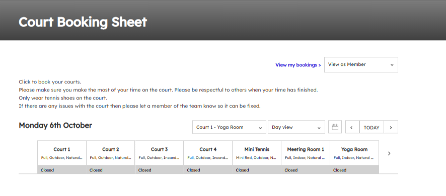 There may be times, due to bad weather or vandalism at the facility that you want to close the courts - you have two options.