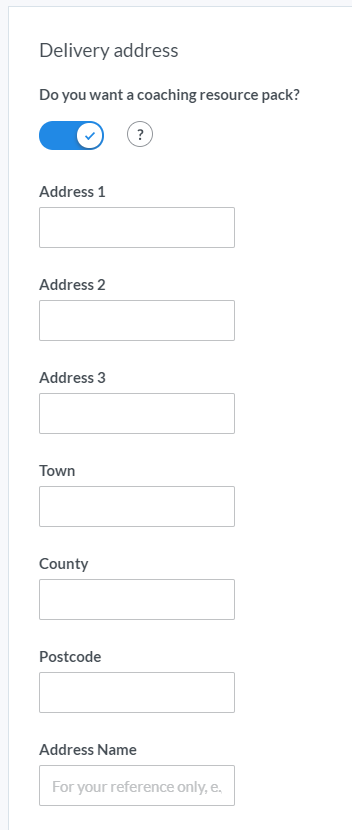 If you've already ordered a recourse pack from a previous course, then a delivery address will be available to select instead of having to re-enter it. If you need the resource pack for the course your creating to be sent to a different location, then you can also enter a new delivery address.