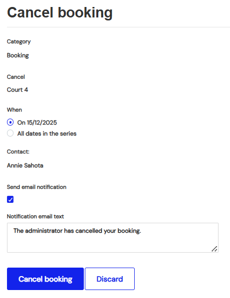 Here you will be presented with 2 options, to cancel your selected date or all dates. Choose which one applies and continue by pressing the 'Cancel booking' button.