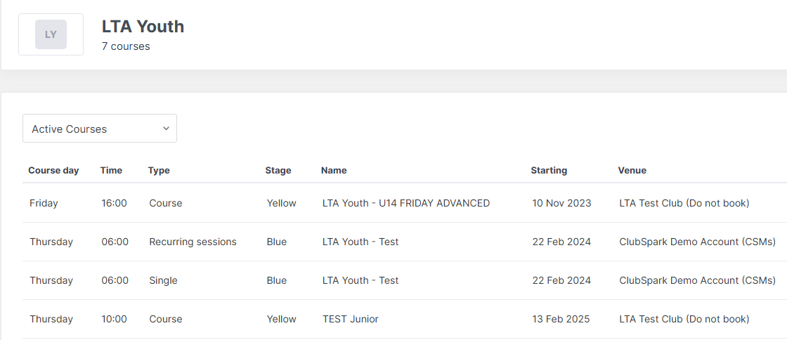 To manually add a player to an LTA Youth course or session, you'll first need to locate the course that you are trying to add them to.