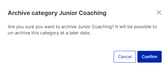 A pop up window will appear - "Are you sure you want to archive Junior coaching? It will be possible to un-archive this category at a later date":